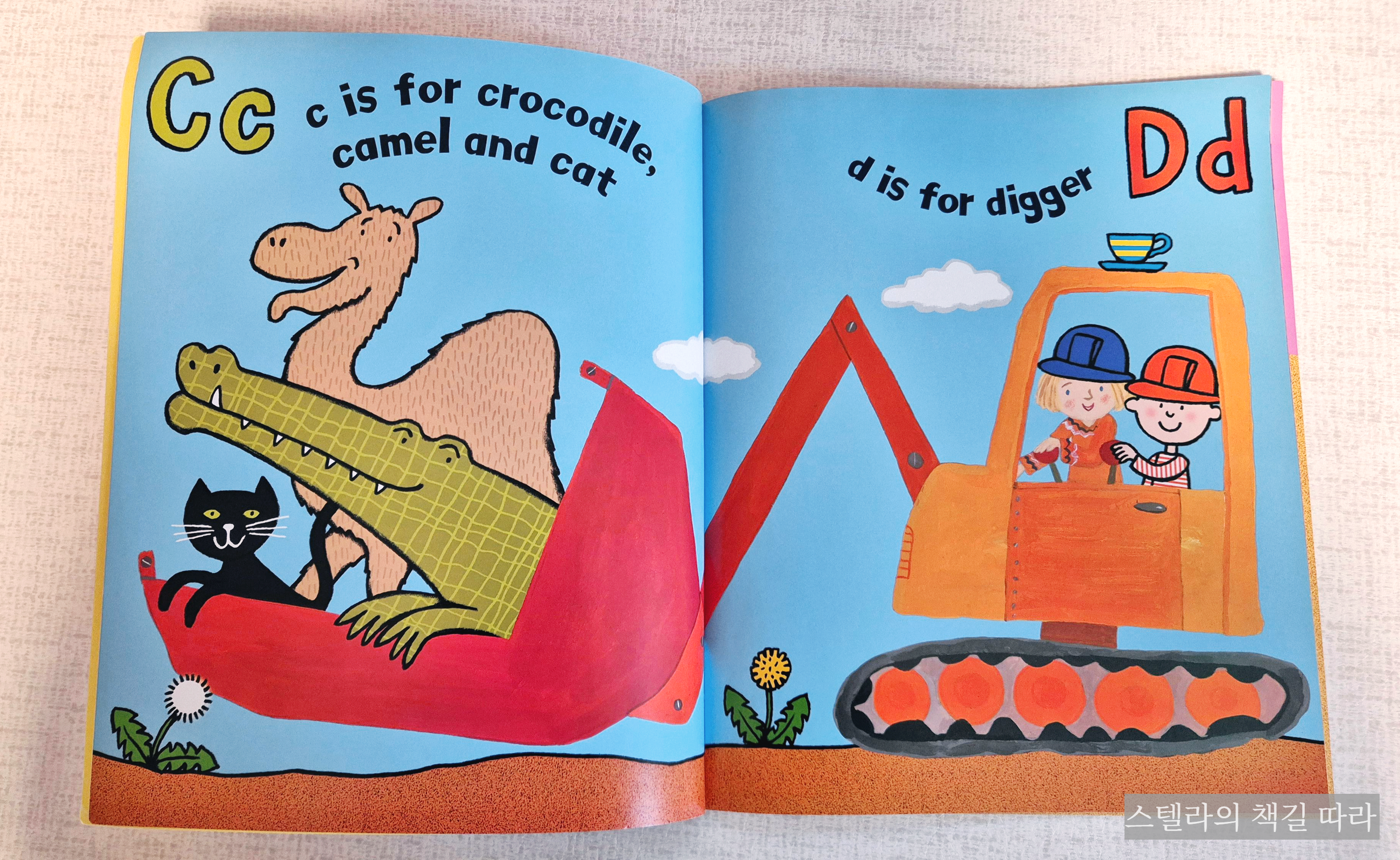 위에서 설명한 것처럼, 직관적이고 눈길을 사로잡는 그림 덕에 스텔라는 Nick Sharratt 작가의 그림책을 아주 좋아합니다. 저희 집에 엄마표 영어를 시작하며 구입했던 알파벳 영어 그림책이 여러 권 있는데, 그 중 스텔라가 가장 자주 꺼내어 읽고 얼마 지나지 않아 그림을 읽으며 스스로 영어 단어를 말하도록 도와준 아주 고마운 책입니다.